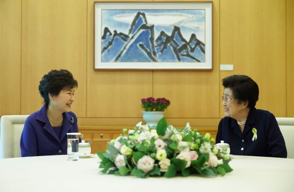 [천지일보=명승일 기자] 박근혜 대통령은 28일 청와대에서 고(故) 김대중 전 대통령의 부인 이희호 여사를 접견했다.