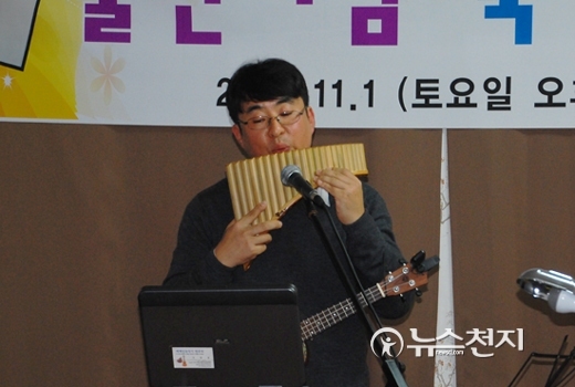 윤덕규 시인의 사회로 진행된 1부에서는 세계민속악기 연주자 조현철 씨가 오카리나, 팬플루트, 포크기타, 튄휘슬, 우쿨렐레 등 5가지 악기 연주를 선보였다.