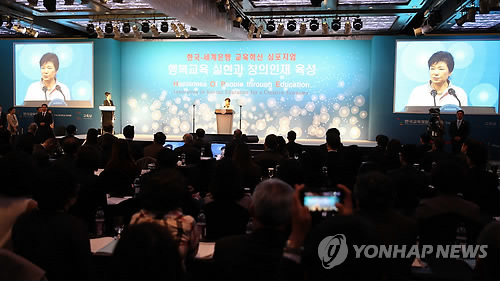 이에 박 대통령은 “현재 한국 정부는 이런 문제의식을 바탕으로 아이들이 행복한 교육, 창의적 인재를 키우는 교육을 만들기 위해 다양한 노력을 기울이고 있다”고 말했다.