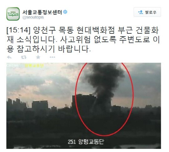 한편 SNS에서는 이 화재 현장을 담은 사진이 급속히 퍼지고 있다. SNS의 목격자들에 따르면 여의도의 건물 옥상에서도 보일 만큼 검은 연기가 자욱하게 올라왔다.