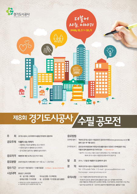 기타 자세한 참가 요령은 경기도시공사 홈페이지(www.gico.or.kr)나 수필공모전 홈페이지(www.gicoessay.co.kr)를 참조하면 된다.