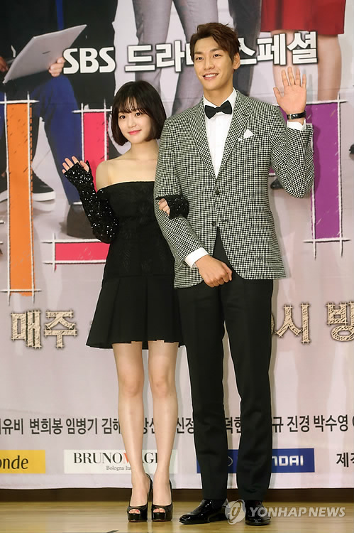 6일 오후 서울 양천구 목동 SBS에서 열린 SBS 새 수목드라마 ‘피노키오’ 제작발표회에 배우 이종석 박신혜 김영광 이유비 이필모가 참석했다. 이 자리에서 이유비와 김영광은 다정한 커플 포즈를 선보였다. 특히 둘의 키가 21㎝나 차이나 눈길을 끌었다.
