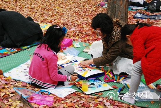 부모와 같이 대회에 참여한 학생들은 기념관 주변 시민의 숲에서 돗자리를 펴고 점심을 먹은 뒤 그림을 그리며 오붓한 시간을 보냈다. 그림을 그리는 학생들은 숲의 맑은 공기를 마시며 모처럼 가족과 함께 늦가을 정취를 만끽했다.