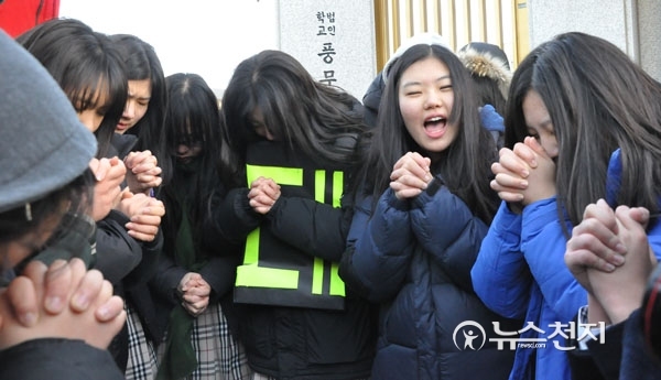 2015학년도 수능날인 13일 오전 학부모 김채일(45, 여) 씨는 딸이 시험을 치르기 위해 들어간 서울 종로구 안국동 풍문여고 문 앞을 오랫동안 지켰다. 김 씨는 공부에 미련이 남아 올해 대학에 입학한 늦깎이 대학생이다.