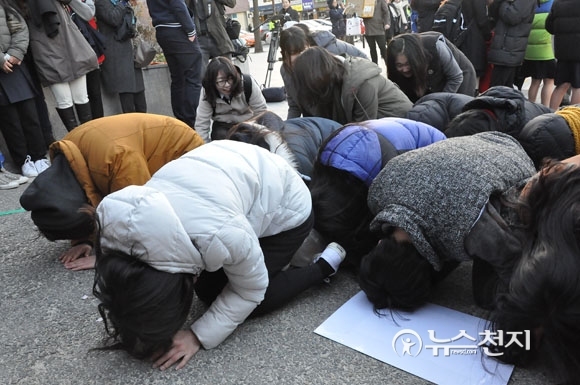 수험생들을 응원하는 각 학교 후배들의 응원 열기도 뜨거웠다. 북과 장구 등 전통적인 응원도구도 등장했으며, 응원가도 울려 퍼졌다. 일부는 선배들이 들어간 학교를 바라보며 큰절을 올리거나 기도를 했다. 특히 서울 영하 2℃ 등 8년 만에 수능 한파가 찾아온 만큼 고사장으로 들어가는 선배들의 손에 핫팩을 쥐여 주는 후배들도 많았다. 태혜진(계성여고 2학년, 여) 양은 “선배들을 응원하기 위해 집에서 5시에 일어나 6시 30분에 학교에 도착했다”며 “지금 선배들의 모습이 1년 뒤 내 모습이라고 생각하니 떨린다”고 전했다.