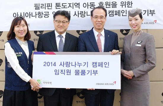 [천지일보=유영선 기자] 아시아나항공이 12일 서울 강서구 오쇠동 아시아나타운에서 기아대책 본부에 필리핀 빈민 아동을 돕기 위한 ‘사랑 나누기 캠페인’ 기부물품 전달식을 가졌다고 밝혔다.