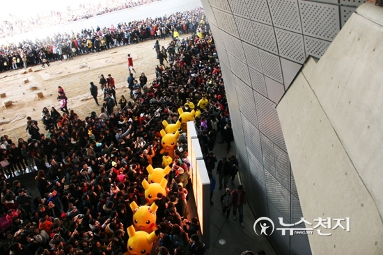 일본서 바통 터치한 ‘피카츄 대량발생’ 쇼타임이 한국 문을 두드렸다. 포켓몬 코리아에서 개최한 이번 행사는 국내에서 열리는 ‘포켓몬 챔피언스데이 at DDP’를 맞아 진행하는 이벤트 중 하나다. 이는 지난 3일 서울시가 공식 페이스북에 피카츄 사진들을 공개하면서 홍보를 한 것이 금세 입소문을 탔다.