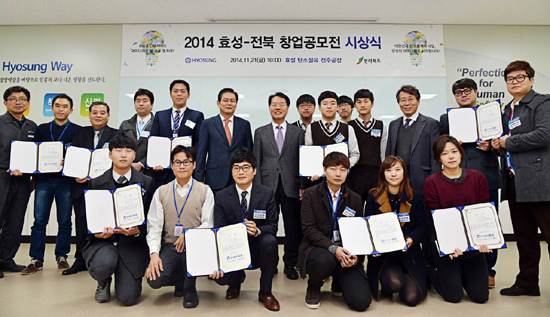 효성 이상운 부회장은 시상식에서 장래 전라북도 창조경제 구현에 기여할 수상자들을 치하하고 팀 별로 상장과 창업 장려금 각 1000만 원을 전달했다.
