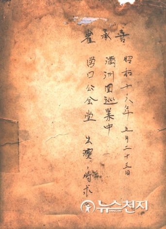 사진 속 최승희는 당시 만주순회공연 당시 찍은 모습으로 금관모양의 모자를 쓴 채 독특한 손 모양을 하고 있다. 무엇보다 사진 뒤편에는 ‘최승희, 소화 16년(1941년) 5월 23일 만주 순회공연 중 공연을 마치고 영구공회당에서 쓴 친필’이란 글이 한자로 적혀 있어 눈길을 끈다.