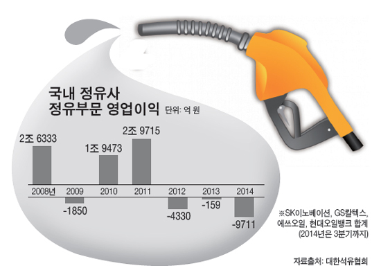 업계 한 관계자는 “유가 하락으로 상대적으로 비싸게 사들인 원유를 정제해 만든 휘발유와 경유를 싸게 팔아야 하는 실정인 데다 환율 상승에 따른 부정적 여파로 실적 반등을 기대하기 어렵다”고 토로했다.