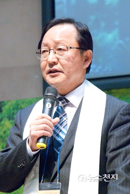 ▲ ⓒ천지일보(뉴스천지) [천지일보=강수경 기자] NCCK가 24일 오전 10시 서울 강서구 강남교회(전병금 목사)에서 제63회 정기총회를 개최했다. 신임회장에 취임한 황용대 목사가 취임사를 발표하고 있다.