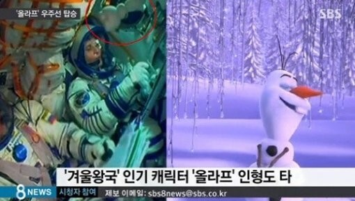 이 올라프 인형은 우주선에 탑승한 러시아 우주인 안톤 슈카플레로프의 딸(8)이 아빠를 지켜줄 부적으로 고르면서 함께 타게 된 것으로 알려졌다.