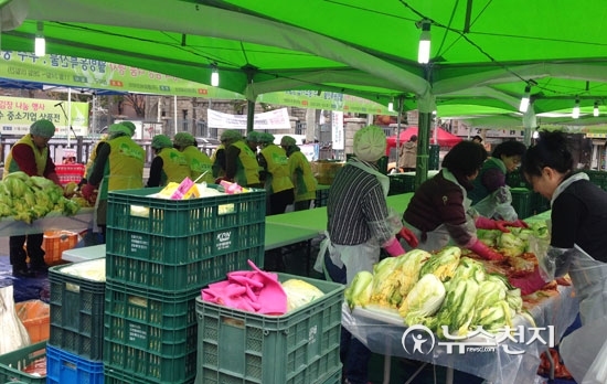 [천지일보=홍수정 기자] 서울 성북구(구청장 김영배) 청사 뒷마당 야외무대에서 (주)리더세이브가 주관하는 사랑의 김장나눔 행사가 24일부터 28일까지 진행된다.