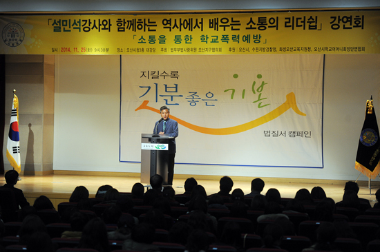 강연회는 전(前) EBS 역사 강사였던 설민석 강사를 초빙해 ‘역사에서 배우는 소통의 리더십’이란 주제로 진행됐다.