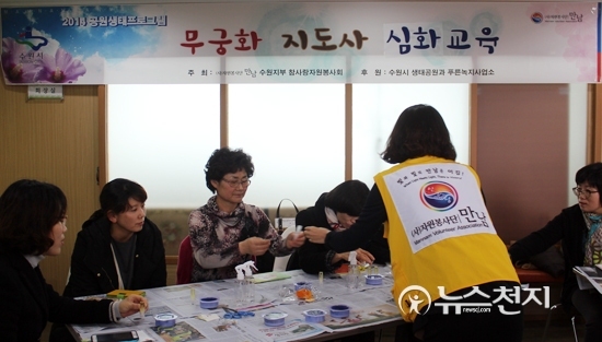 참사랑자원봉사회 사무실에서 열린 이날 교육은 수원시 무궁화 생태교실 운영을 하기 위한 지도사 양성을 목적으로 수원시 푸른 녹지사업소가 후원하는 프로그램이다.