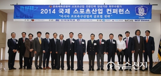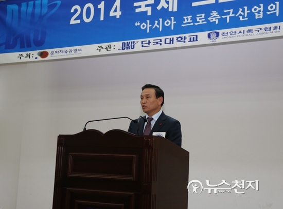 [천지일보 천안=박주환 기자] 문화체육관광부가 주최하고 천안시축구협회와 단국대학교가 주관한 2014 천안 국제 스포츠산업 컨퍼런스가 27일 오후 충남 천안시 안서동 단국대학교 천안캠퍼스 생명자원과학대학 국제회의장에서 열렸다.