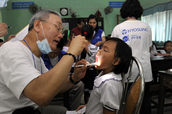 올해는 건국대학교병원 및 강동경희대학병원 의사진 24명과 통역, 진료의원 및 환경정리를 도운 효성 베트남법인 임직원 자원봉사자 50명 등이 ‘미소원정대’에 참여했다.