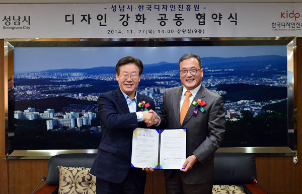 [천지일보 성남=홍란희 기자] 이재명 성남시장과 이태용 한국디자인진흥원장이 지난 27일 오후 시청 9층 상황실에서 ‘디자인 강화에 관한 업무 협약’을 했다.