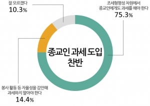 [천지일보=강수경 기자] 국민 10명 중 7명 이상이 연말정국의 뜨거운 감자로 부상한 ‘종교인 과세’와 관련해 찬성 입장인 것으로 조사됐다.