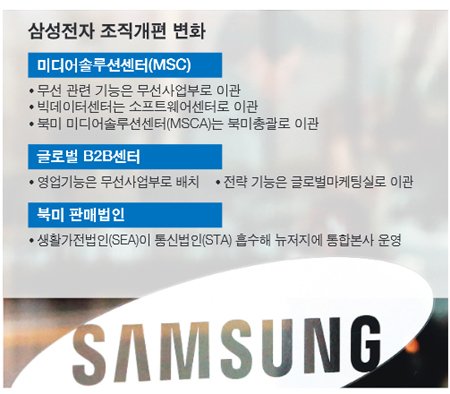 지난 10일 삼성전자가 발표한 2015년 정기 조직개편과 보직인사에 따르면 콘텐츠·서비스를 담당하는 미디어솔루션센터(MSC)와 글로벌 B2B센터를 해체, 각 사업부에 분산 배치했다.
