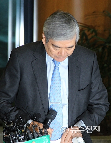 [천지일보=임문식 기자] 조양호 한진그룹 회장이 12일 오후 서울 강서구 공항동 본사 로비에서 조현아 대한항공 전 부사장의 ‘땅콩 리턴’ 사건과 관련해 입장을 밝히고 있다. 조양호 회장은 “제 여식의 어리석은 행동으로 큰 물의를 일으킨 데 대해 진심으로 사죄 드린다”라며 “국토부와 검찰의 조사 결과와 상관없이 조현아를 대한항공 부사장직은 물론 계열사 등기이사와 계열사 대표 등 그룹 내 모든 자리에서 물러나도록 하겠다”고 밝혔다.