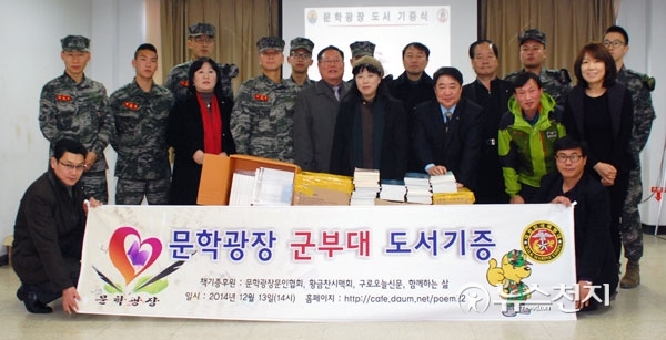 [천지일보=김현진 기자] 문학광장문인협회·황금찬시맥회·구로오늘신문·함께하는 삶이 13일 경기 김포시에 위치한 해병대 제2사단 보급수송대대를 방문해 600여권의 책을 기증했다.