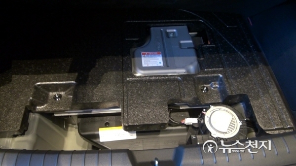 토요타 캠리 하이브리드 차량의 단점 중 하나는 트렁크 용량이다. 캠리는 배터리가 뒷좌석 뒤편에 위치해 트렁크 용량이 충분치 않았다. 하지만 현대차는 이 문제를 해결하고자 예비 타이어 공간에 배터리를 채웠다. 덕분에 트렁크 공간이 기존의 차량만큼 충분히 넓어졌다.