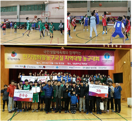 [천지일보=박혜옥 기자] 사단법인 한기범희망나눔은 ‘국민생활체육회와 함께하는 한기범희망농구교실 지역대항 농구대회’를 지난 13일 강동구 강일중학교 체육관에서 개최했다.