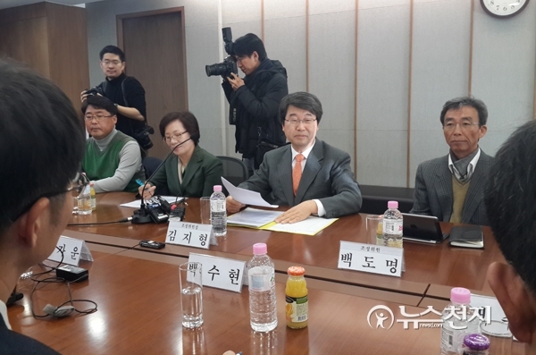 [천지일보=이승연 기자] 18일 삼성 직업병 조정위원회가 출범한 후 관계자들이 모여 첫 상견례를 진행했다. 9차교섭 후 삼성직업병피해자가족대책위원회(가대위)가 반올림(반도체 노동자의 건강과 인권지킴이)으로부터 떨어져 나온 후 정식교섭이 중단된 지 71일 만이다.