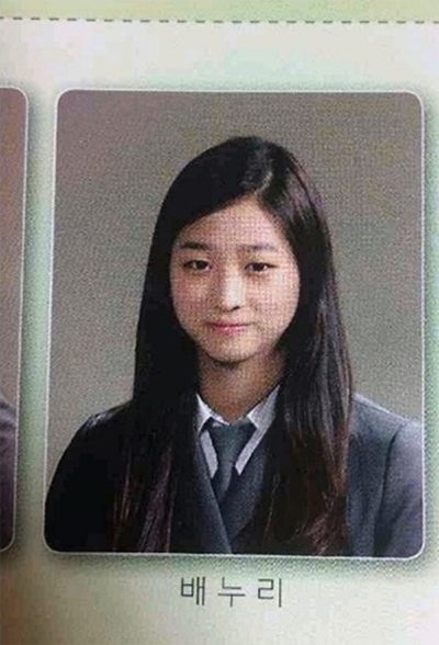 공개된 사진 속 배누리는 교복을 단정하게 입고 긴 생머리에 이목구비가 뚜렷한 외모로 청순미를 발산하고 있다.