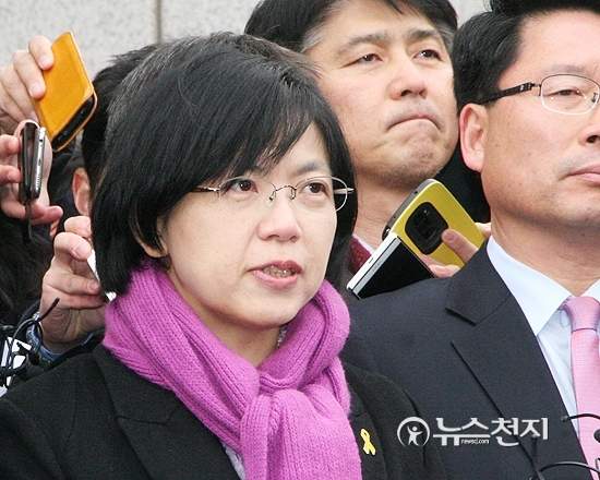 [천지일보=명승일 기자] 19일 오전 헌법재판소에서 통합진보당에 대한 정당 해산이 결정된 가운데 통합진보당 이정희 대표가 서울 종로구 헌법재판소 대심판정 앞에서 기자회견을 하고 있다.