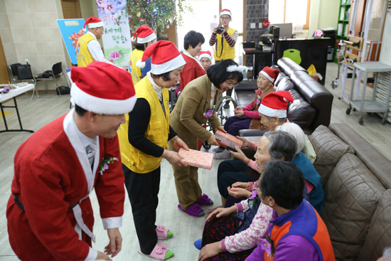 이날 행복지키미봉사단 자원봉사자 30명은 무궁화 산타 복장을 하고 이․미용 봉사와 웃음치료, 바이올린 공연, 민요 등 프로그램을 비롯해 무궁화차와 무궁화 떡 등 다과도 전하는 시간을 가졌다.