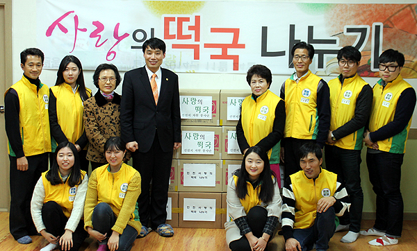 인천 신천지교회는 23일 부평구 산곡동 성전에서 ‘사랑의 떡국 나누기’ 행사를 열고 인근 주민에게 떡국용 떡을 전달했다.