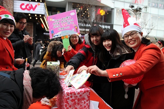 [천지일보 대구=이지수 기자] 크리스마스를 앞둔 지난 23일 오후 대구시 중구 동성로 한일극장 앞에서 신천지 대구교회 홍보단(대구교회 홍보단)은 ‘SCJ와 함께 하는 사랑의 크리스마스 카드 전하기’ 행사가 열렸다.