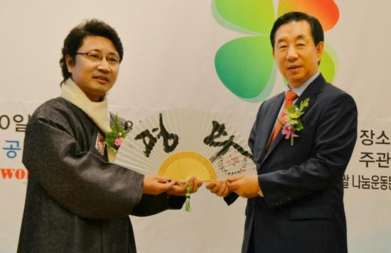 UN이 인정한 세계평화작가이자 세계평화홍보대사인 한한국 작가는 시상식에 앞서 특별히 주최 측의 요청으로 직접 친필로 쓴 ‘성공의 부채’와 ‘평화의 부채’을 선보여 눈길을 끌었다.