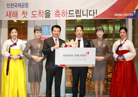아울러 아시아나는 새해 첫 입국 승객인 안연회씨(남, 45)에 대한 환영행사를 갖고 국제선 비즈니스 왕복 항공권과 꽃다발을 증정했다.