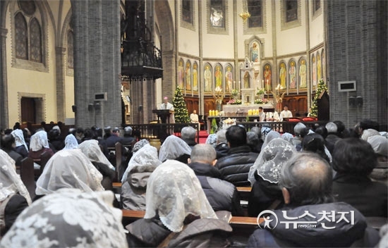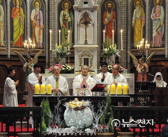 [천지일보=정현경 기자] 천주교 서울대교구 민족화해위원회(민화위)가 지난 1995년 시작한 ‘민족의 화해와 일치를 위한 미사(화해미사)’가 6일 1000번째 미사를 가졌다. 남북의 평화를 기원하는 화해미사는 매주 화요일 오후 7시 명동대성당에서 진행되고 있다.