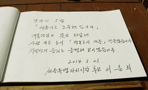 그는 지금도 한결같이 “세종시의 미래가 대한민국의 미래”라고 강조하며 “처음 세종시를 행정수도로 정할 때 약속했듯이 세종시민으로서 남은 삶의 모든 것을 바치겠다”고 약속했다.