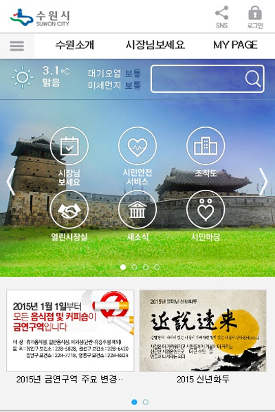 [천지일보 수원=강은주 기자] 경기 수원시가 스마트폰으로 수원시의 정보를 간편하게 확인할 수 있는 ‘모바일서비스’를 새롭게 개편해 제공한다고 13일 밝혔다.