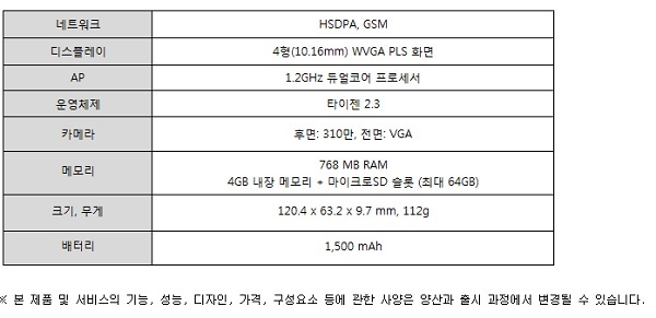삼성 Z1은 4.0형 디스플레이, 1.2GHz 듀얼코어 프로세서, 듀얼 심카드, 1500mAh 용량 배터리를 탑재했으며 초절전모드, SOS 알림 기능, 안티 바이러스 백신 등을 제공한다. 운영체제는 가볍고 빠른 타이젠을 채용해 스마트폰 부팅 속도와 앱 실행 속도가 빠르고 인터넷 성능도 개선돼 웹페이지를 빠르게 불러와 데이터 사용량도 줄일 수 있다는 게 회사 측의 설명이다.