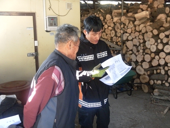 현재 승주119안전센터 소방대원이 화목보일러 사용 가구를 일일이 방문해 화목보일러 안전관리 메뉴얼을 전달하고 있다.