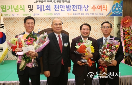 한편 ▲안희정 충남도지사 표창에 황각주 황산건설 대표 ▲김지철 충남도교육감 표창에 이홍기 천안시개발위원회 명예회장 ▲구본영 천안시장 표창에 채윤기 천안시개발위원회 전무이사 등이 수상의 영예를 안았다.