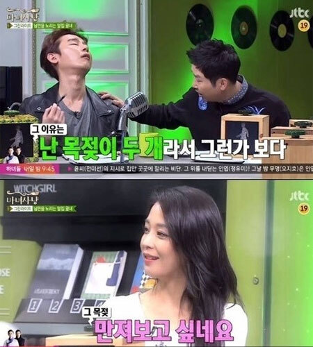 이에 신동엽이 한고은에게 “목젖이 남자의 상징인데 두 개면 어떠냐?”고 묻자 한고은은 미소를 지으며 “만져보고 싶네요”라고 말해 허지웅을 설레게 했다.