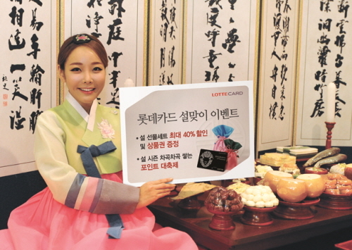 또 30만원 이상 롯데상품권카드를 구매하면 최대 2만원 상당의 롯데상품권카드를 추가로 증정한다. 이 밖에 롯데카드로 롯데마트, 롯데슈퍼, 세븐일레븐, 이마트, 홈플러스, 롯데닷컴 등 다양한 유통매장에서 설 선물세트를 구매하면 최대 30% 할인은 물론, 결제금액에 따라 5%에 해당되는 롯데상품권을 제공한다.