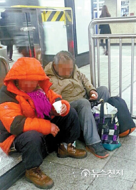 2일 오후 서울역 지하도. 노숙인 2명은 차가운 바닥에 빈 박스를 깔고 앉아 있었다. 금방 술판을 끝낸 상태였다. 이들은 주변 행인은 아랑곳하지 않고 주변에 침을 뱉고, 큰 소리로 떠들어 댔다. 이들의 일상이었다.