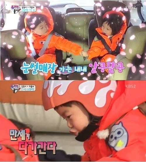 지난 8일 방송된 KBS2 ‘해피선데이-슈퍼맨이 돌아왔다’에서는 눈썰매장을 방문한 삼둥이 송대한, 송민국, 송만세와 추사랑의 모습이 전파를 탔다.