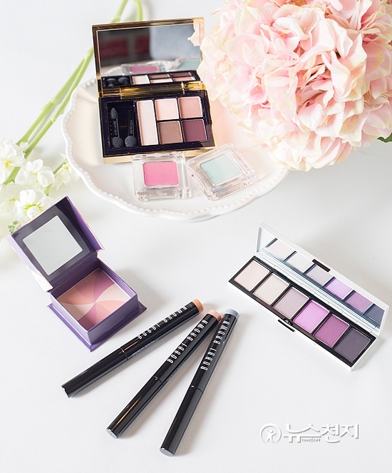 먼저 에스티 로더(ESTEE LAUDER)의 퓨어 칼라 엔비 스컬프팅 아이섀도우 5칼라(Pure Color Envy Sculpting EyeShadow 5-Color Palette)로 여성미와 청순미를 살려보자. 린넨, 난꽃, 정글 등 자연과 다양한 사물에서 영감을 받은 이번 섀도우의 ‘커런트 디자이어’는 매트 벨벳, 새틴, 진주펄 등 다양한 질감이 구성돼 여성미를 살리는 메이크업 연출에 도움을 준다. 진주펄이 들어간 아이보리를 눈꺼풀 전체에 발라주고 펄 핑크로 아이라인에서 아이 홀까지 중간톤을 잡아 준 다음 바이올렛이나 브라운으로 아이라인을 따라 포인트를 준다.