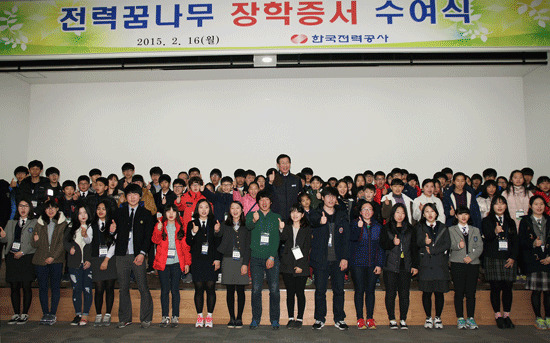 한전 조환익 사장은 인사말에서 “장학생으로 선정된 것은 큰 행운이자 열심히 노력해서 선생님과 주위 분들의 좋은 평가를 받은 결과인 만큼 자부심을 갖고, 또 친구들의 양보가 있었기에 가능한 일인 만큼 겸손한 마음도 가져야 한다”고 강조했다.