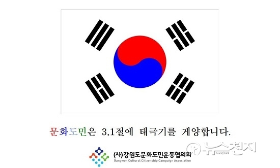 협의회는 ‘문화도민은 3.1절에 태극기를 게양합니다!’를 주제로 선열들의 숭고한 독립정신을 계승·발전시키고 국기 게양을 통해 강원도민의 마음을 하나로 결집시키기 위한 운동을 펼친다.