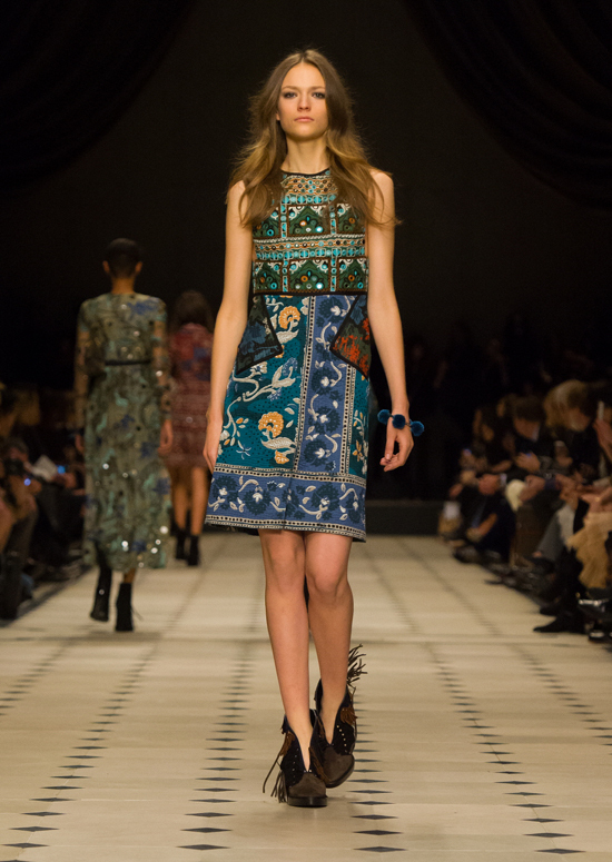 패치워크, 패턴 & 프린트(Patchwork, Pattern & Prints) 테마로 열린 이번 쇼는 영국 버버리 모델들을 비롯해 현재 버버리 캠페인 모델인 케이트 모스, 카라 델레바인, 나오미 캠벨과 조던 던이 처음으로 함께 한자리했다.